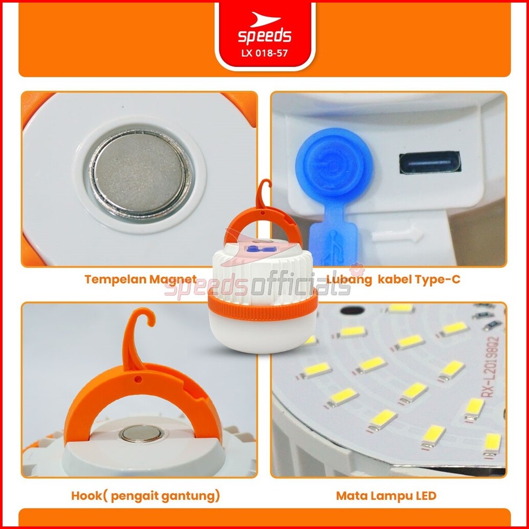 Speeds Lampu Camping Led Gantung Camping Emergency Lamp Super Terang Charger Type-c Outdoor Indoor Lampu Kemah 018-57