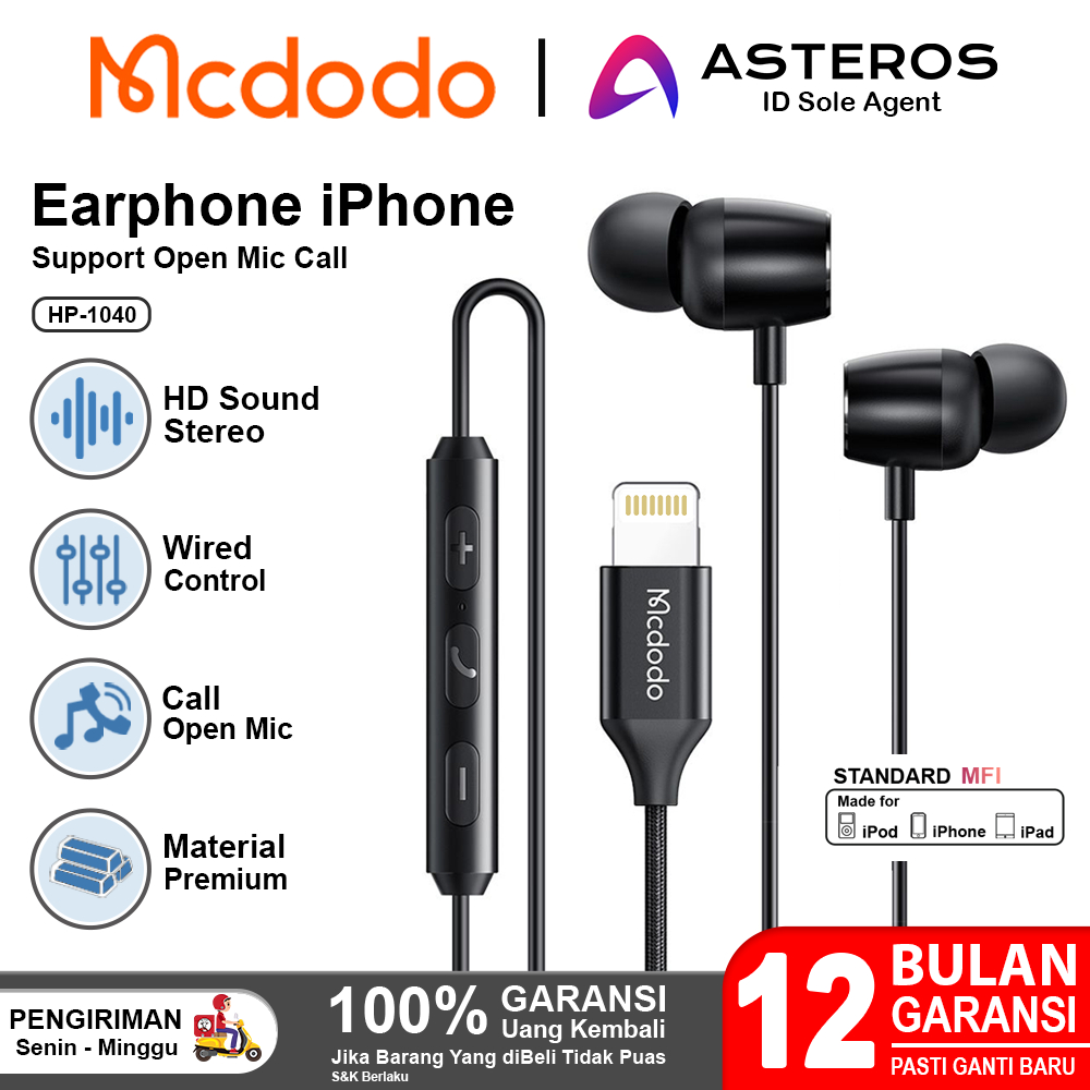 MCDODO Earphone Headset For iPhone Lightning Audio, Call, Open Mic Game HP-2800