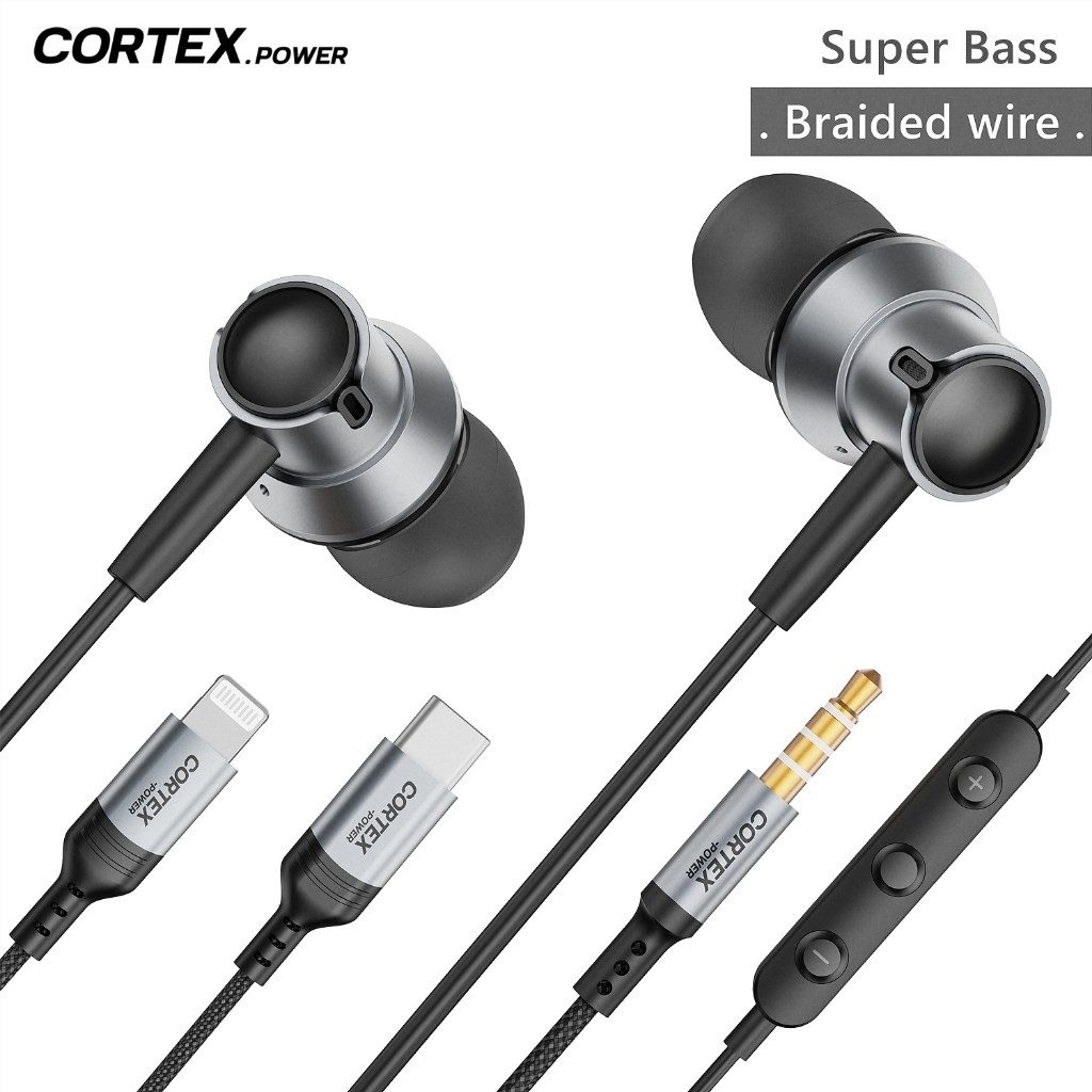 Cortex ME-A3 Braided wire Headset Game / Hi-Fi Suara stereo Super Bass kelas Profesional Earphones Headsphone Jack 3.5MM Lightning TYPE-C MEA3 MEA1