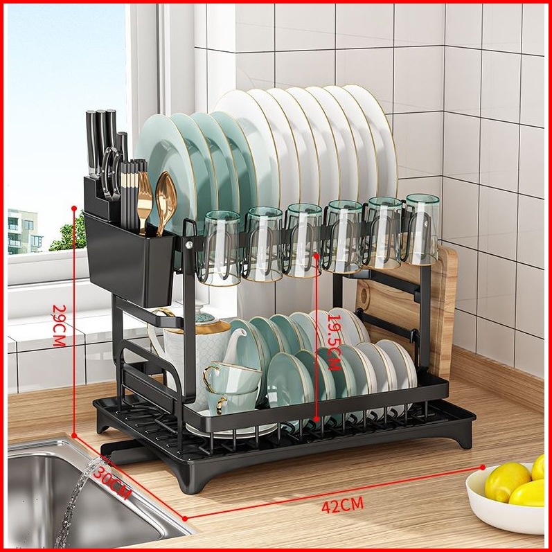 Rak Piring Multifungsi Rak Cangkir Dapur Stainless Steel Penyimpanan Rak Pengering Piring Rak Mangkuk Piring F25