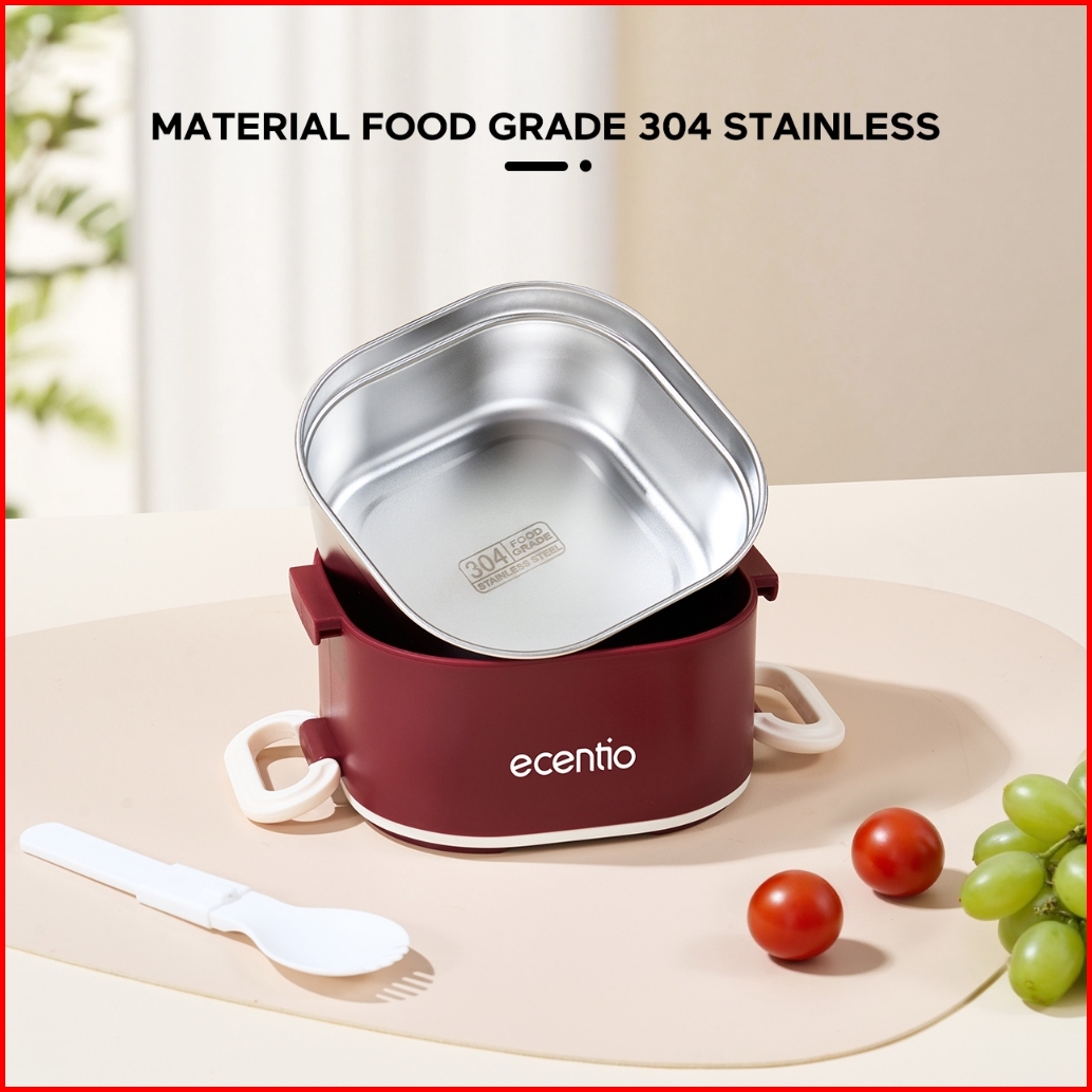 Ecentio Kotak Bekal Bulat Stainless Steel Double Layer 650ml 650ml Lunch Box Wadah Makan Bento Kapasitas Besar Tahan Boc