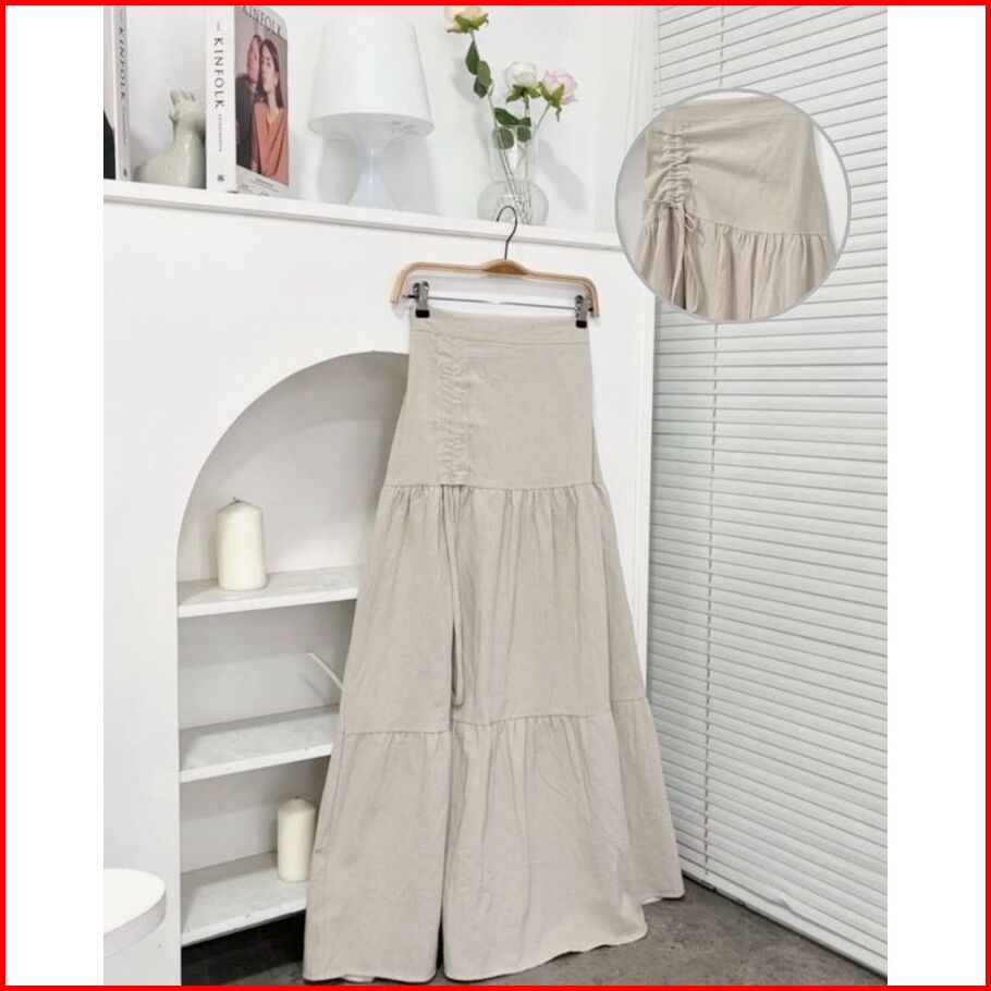 Zeska Skirt Rok Serut Korean Style Rok Wanita Rok Polos Linen