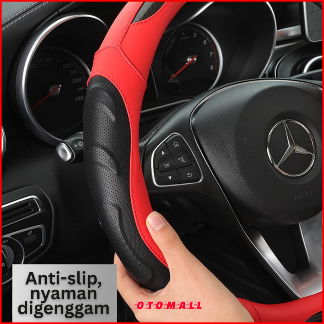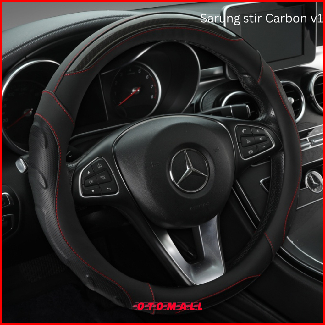 Otomall Sarung Stir Cover Setir Mobil Hitam Full Black Carbon V1 Anti Slip Breathable