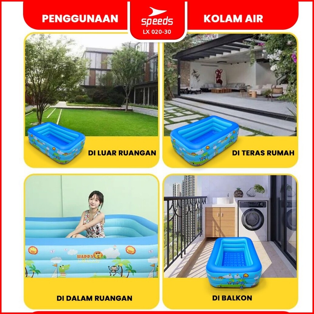Speeds Kolam Renang Anak 210x140x56cm 3 Ring Layer Motif Kolam Renang Bayi Portable Bahan Kuat Inflatable Swimming Pool