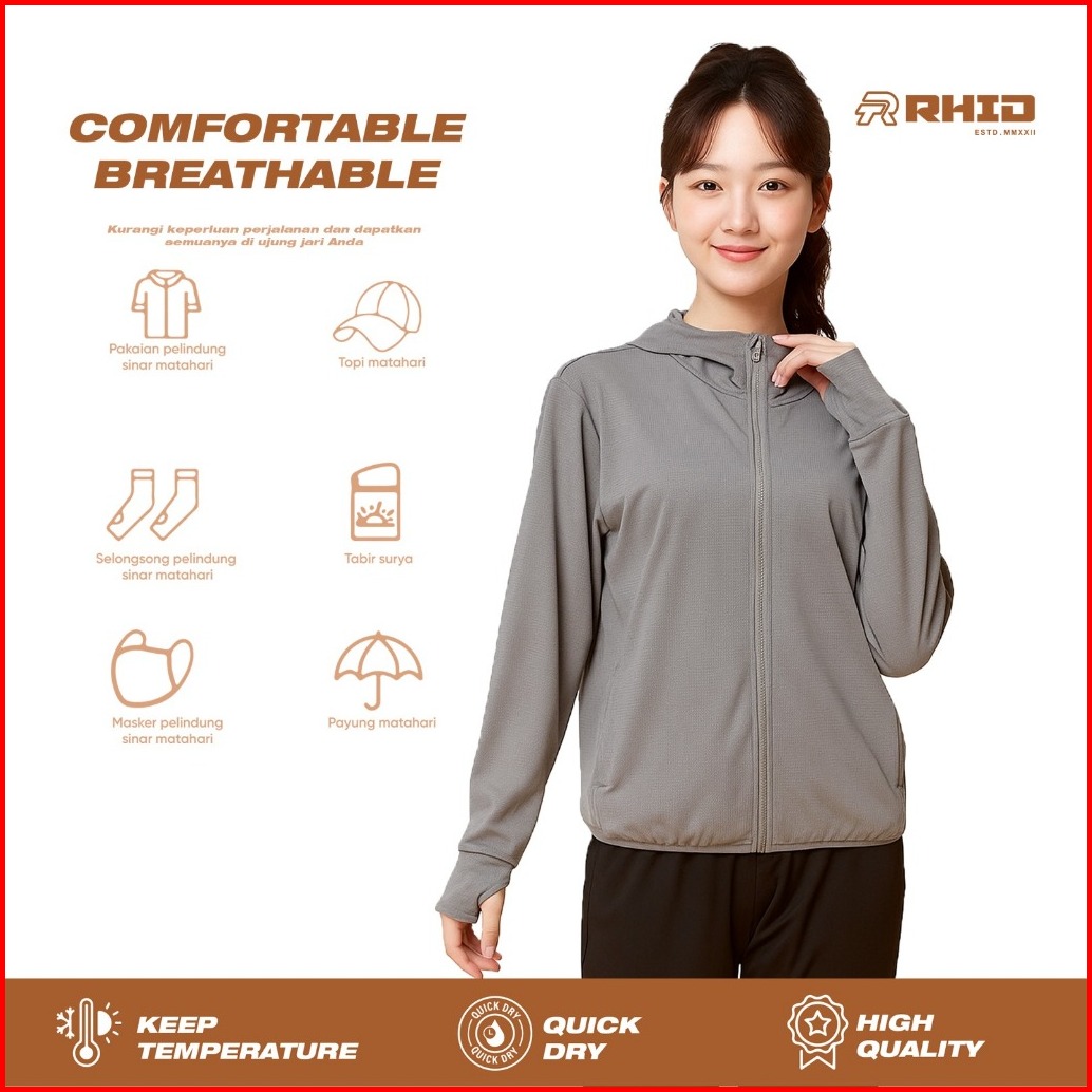 Rhid - Jaket Wanita Olahraga Hoodie Outdoor Sun Protection Anti Uv Joging
