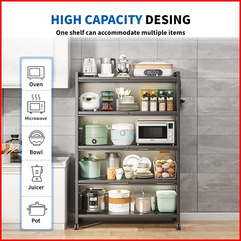 Kabinet Dapur Anti Deburak Multifungsi Pintu Geser Roda Penyimpanan Microwave Lpg Minimalis Modern - Multi Layer Tahan L