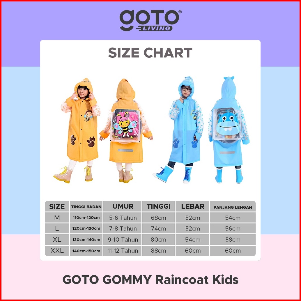 Goto Gommy Raincoat Jas Hujan Anak Ransel Motif Perempuan Laki Laki