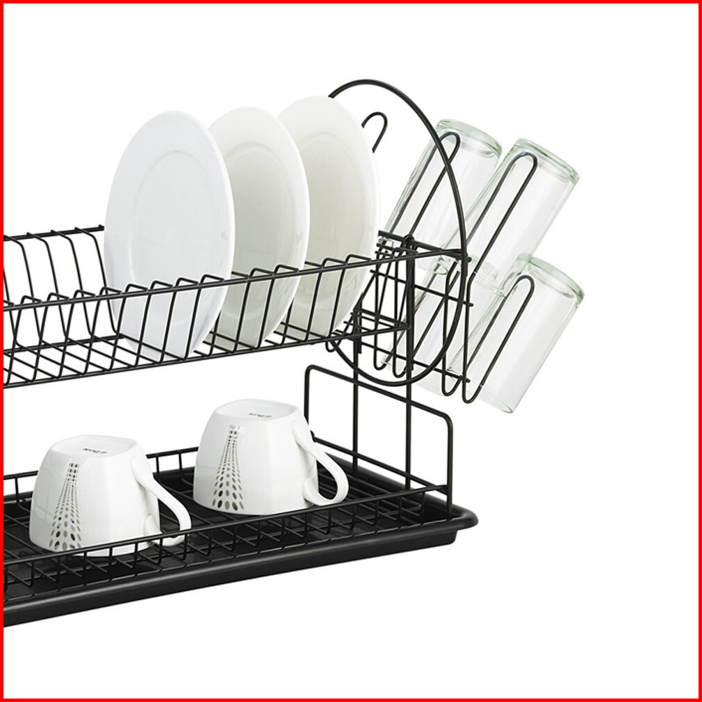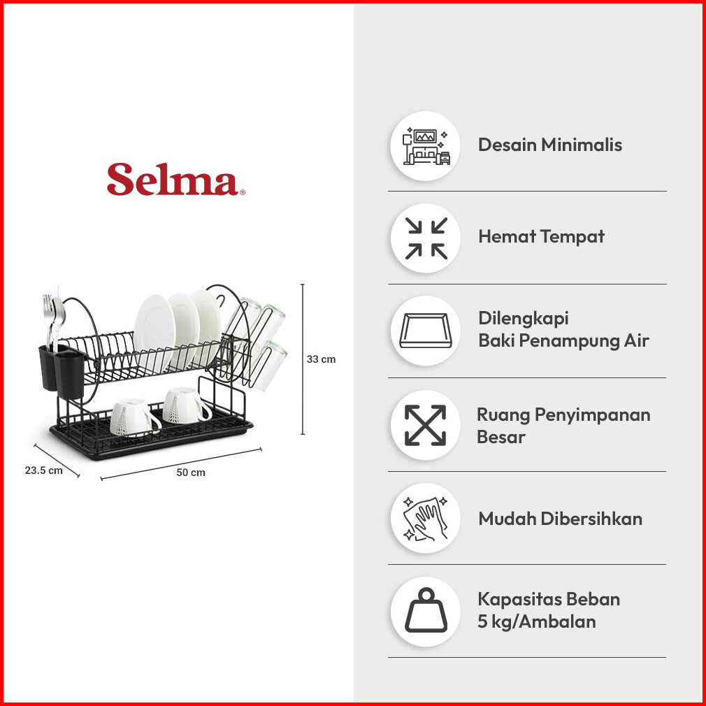 Selma Chika Rak Piring 2 Tingkat - Hitam Dish Rack Tempat Peralatan Makan Perlengkapan Dapur Rak Pengering Alat Makan