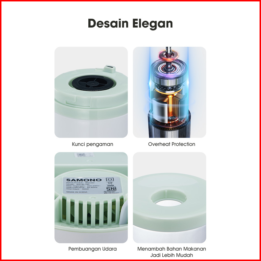 Samono Blender Mini Portable Chopper Multifungsi Low Watt 4 Mata Pisau Garansi Resmi 1 Tahun Sw-bl180