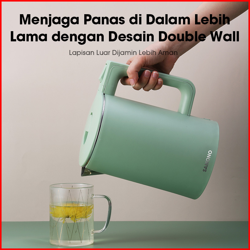 Samono Electric Kettle Teko Listrik Pemanas Air Kapasitas 2 Liter Lapisan Ganda Water Heater Sw-eks17b