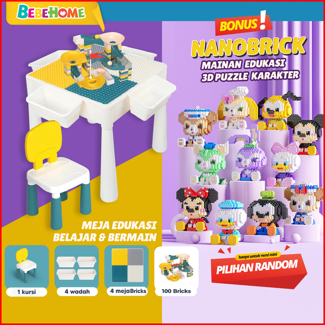Bebehome Meja Belajar Anak Set Meja Belajar Free Kursi Set Meja Belajar Multifungsi Free Nanobrick