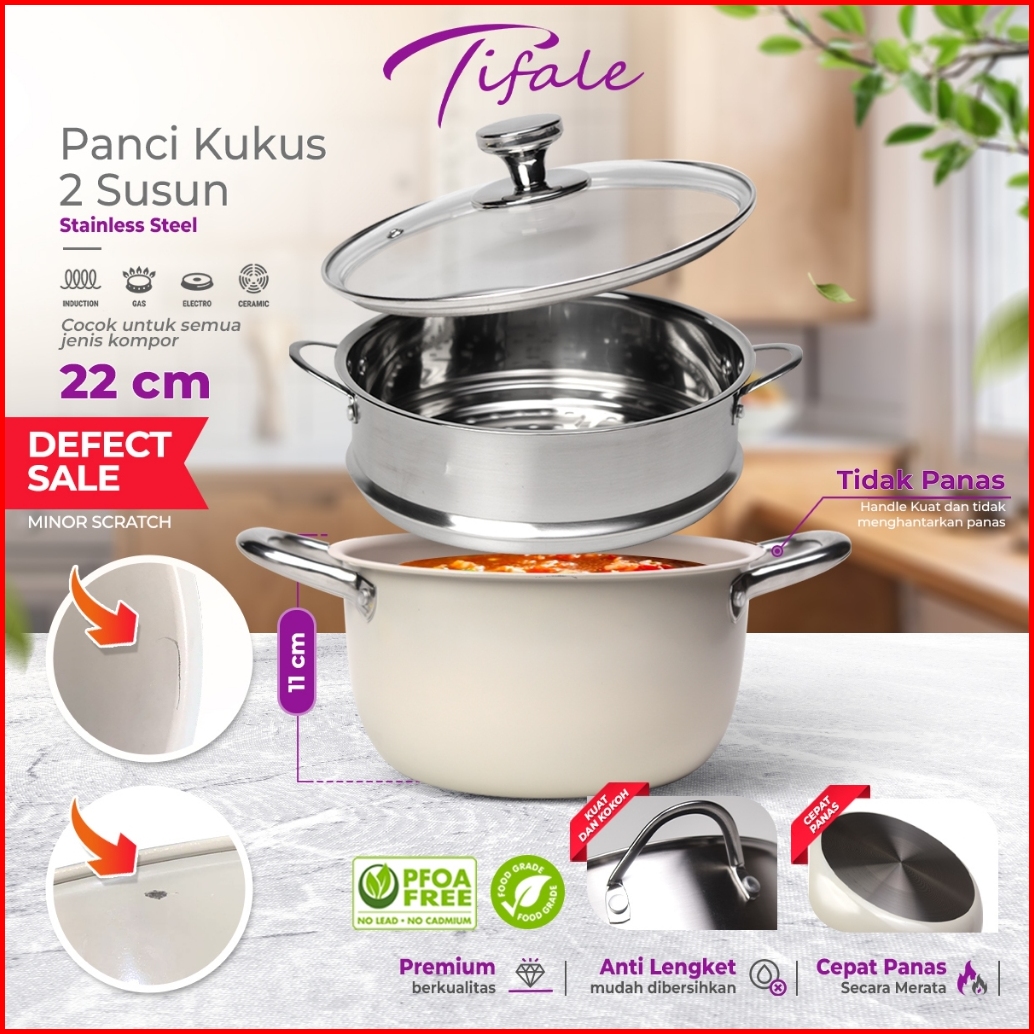 Tifale X Bebehome Panci Kukus Sup Steam Pot 2 Tingkat Steamer Stainless Steel Tutup Kaca
