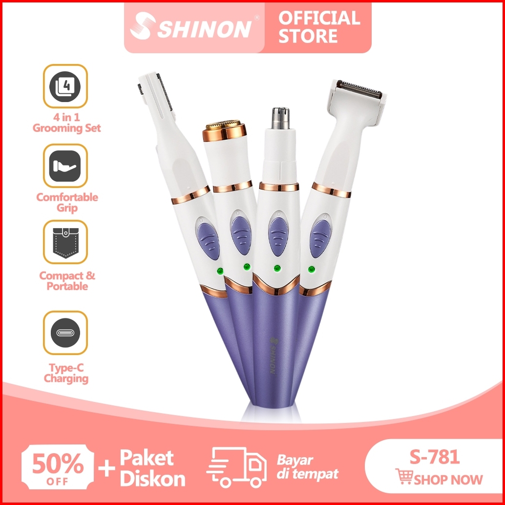 Shinon S-781 Set Alat Cukur Elektrik Wanita Untuk Area Kemaluan Ketiak Tangan Kaki Wajah Alis Dan Hidung Grooming Set Ty