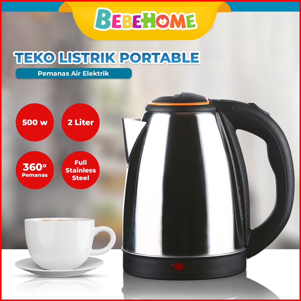 Bebehome Teko Listrik 2 Liter Full Stainless Steel Pemanas Air Electric Kettle Ketel Besar Otomatis 500 Watt