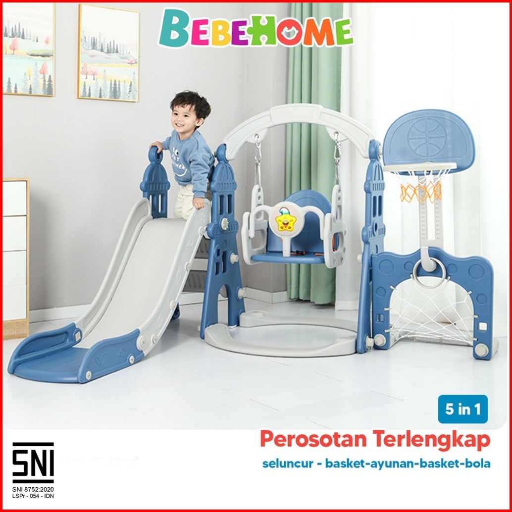 Bebehome 5in1 Perosotan Anak Musik Prosotan Anak Premium Ayunan Ring Basket Seluncuran