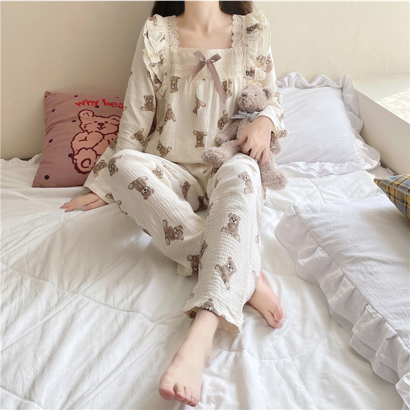UNINICE Motif ber lucu, set piyama wanita dua potong yang nyaman dengan renda