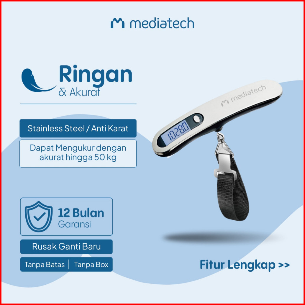 Mediatech Premium Stainless Steel Luggage Scale Ls -220 For Travel - 470014 - Timbangan Koper