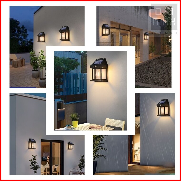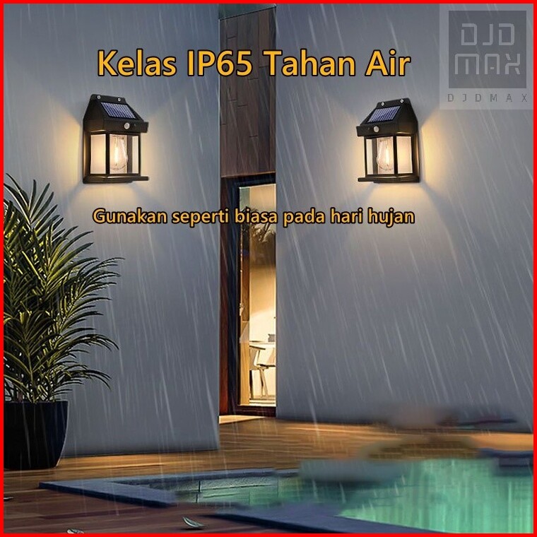 Djdmax Lampu Dinding Sensor Tenaga Surya Lampu Pintar Halaman Luar Ruangan Tahan Air Otomatis Menyala Malam Hari Lampu B