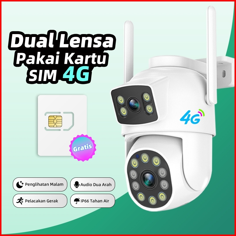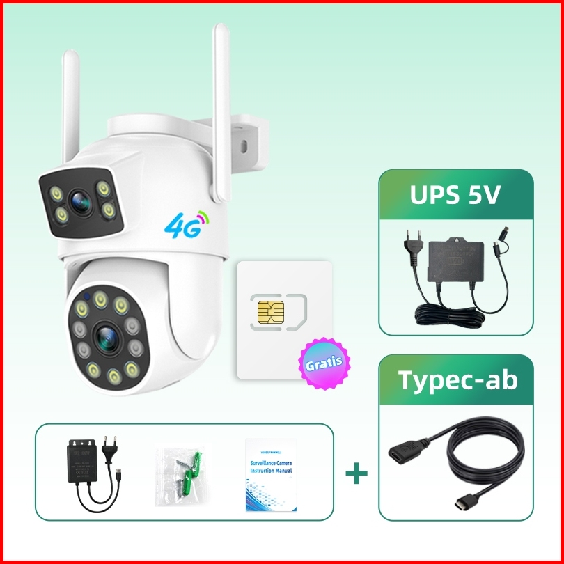 V380 Bp3-4g Kamera Keamanan Cctv Lensa Ganda Luar Ruangan Tahan Air Penuh Warna Penglihatan Malam Kartu Sim 4g Gratis
