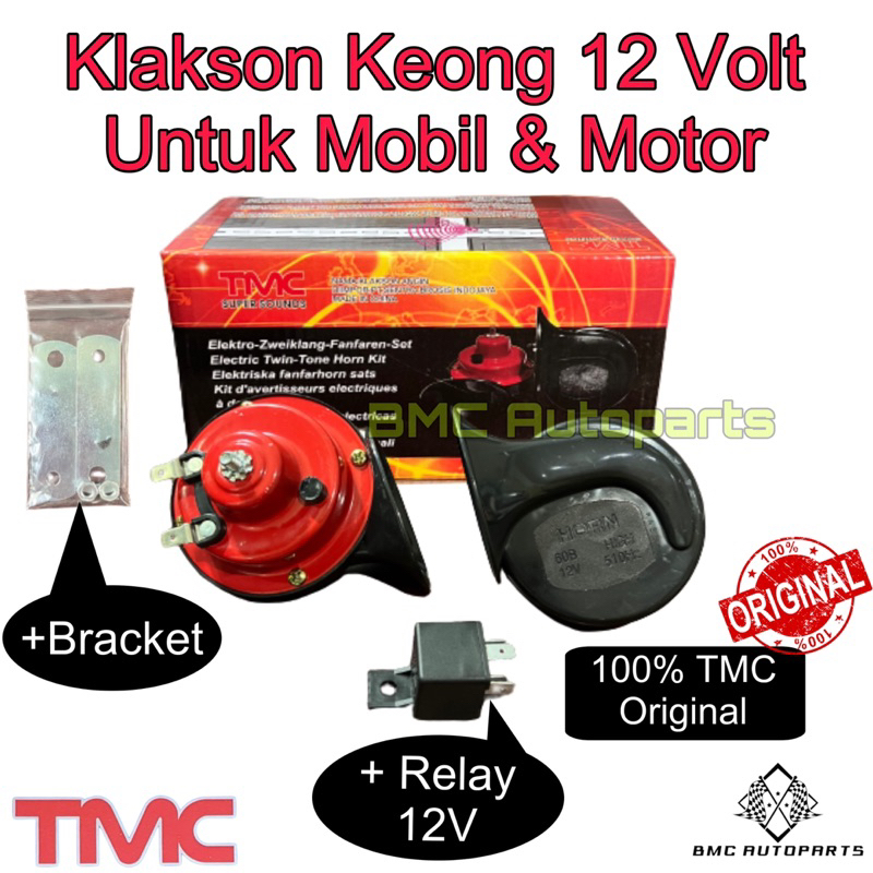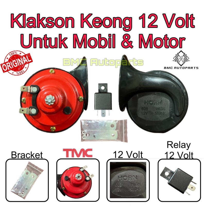 Klakson Keong 12 Volt Mobil Motor + Relay 12V & Bracket - Air Horn TMC Original