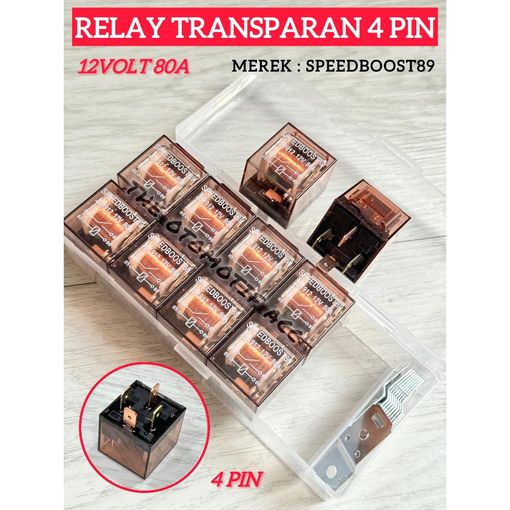 Relay Klakson / Relay Transparan 1 BOX isi 10 Pcs 4 Kaki 12V 80A Bening Indikator LED
