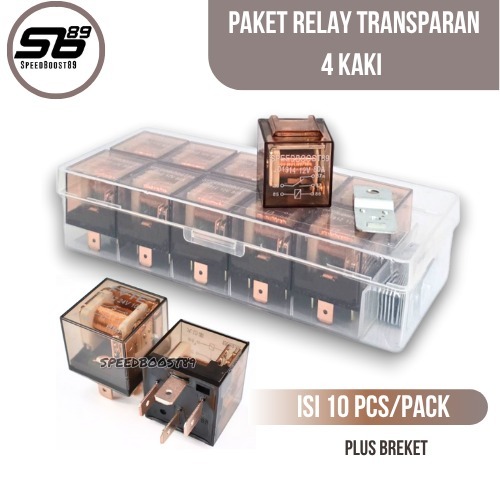 Relay Klakson / Relay Transparan 1 BOX isi 10 Pcs 4 Kaki 12V 80A Bening Indikator LED
