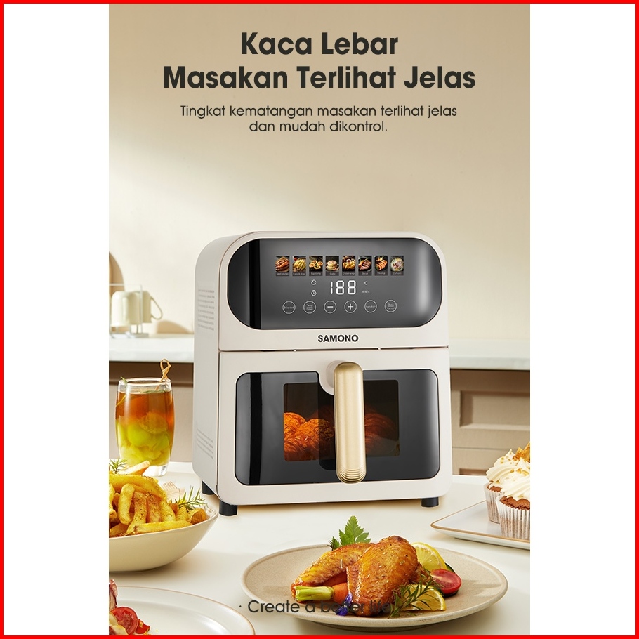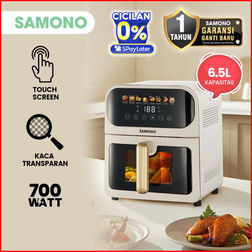 Samono Air Fryer Oven Touch Screen 6 5 Liter Low Watt Body Metal Dengan Kaca Garansi 1 Tahun Sw-afw65