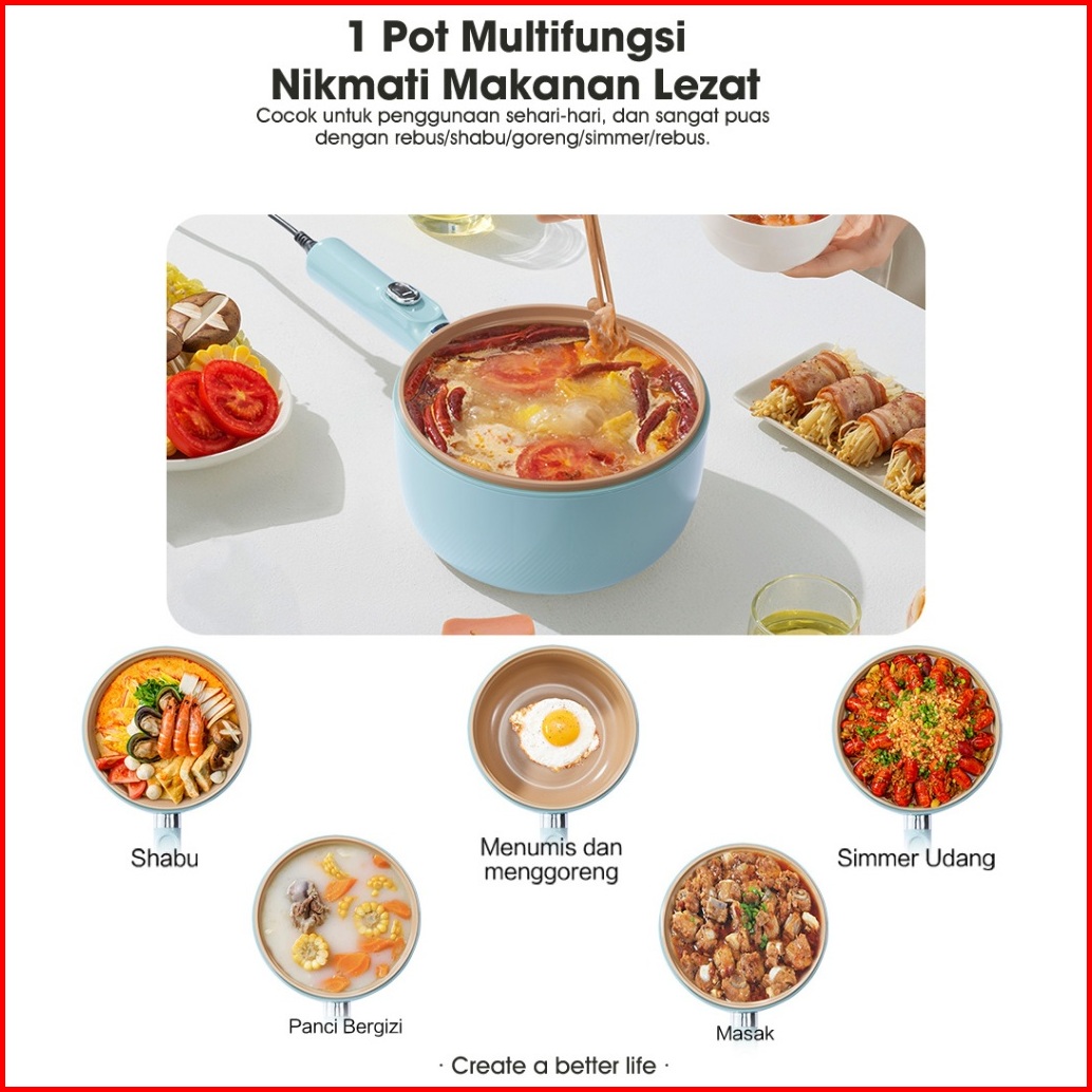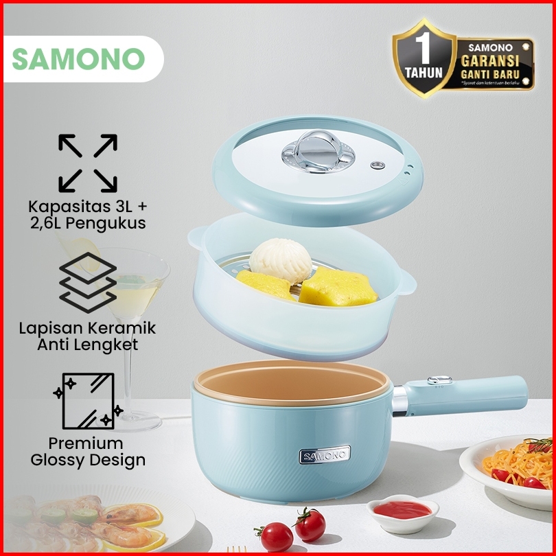 Samono Panci Listrik 3l Anti Lengket Glossy Design Low Watt Serbaguna Kukusan 2.6l Sw-dg06