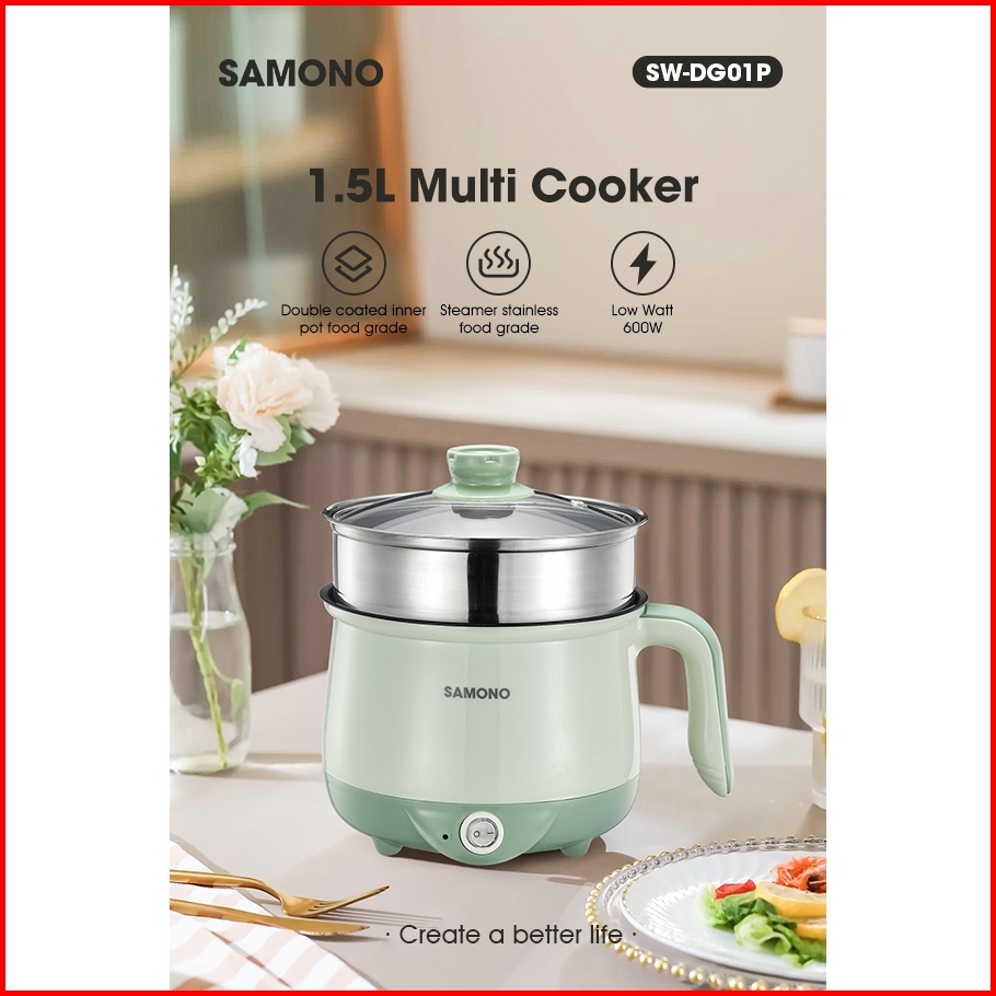 Samono Panci Listrik 1 5 Liter Fry Pan Teflon Keramik Kukusan Stainless Serbaguna Low Watt Garansi 1 Tahun - Sw-dg01p
