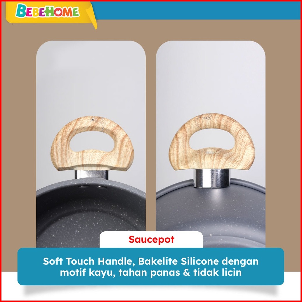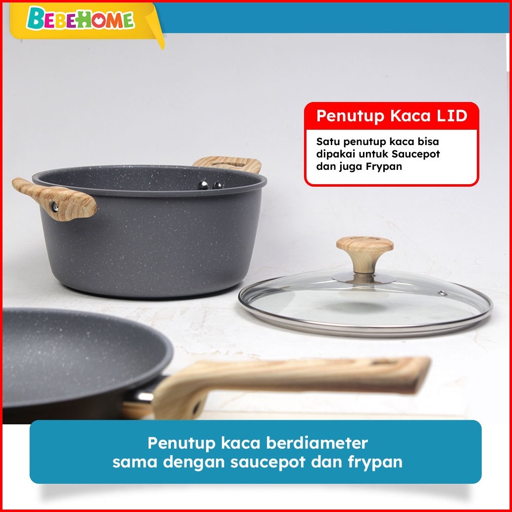 Bebehome X Tifale Celeste 3in1 Set Dark Grey Granite Casserole Frypan Saucepot 24cm Anti Lengket