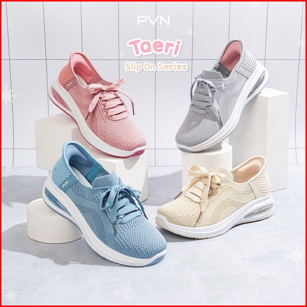 Pvn Taeri Slip On Sepatu Sneakers Olahraga Wanita Sport Shoes Black White Pink Cream Grey 281
