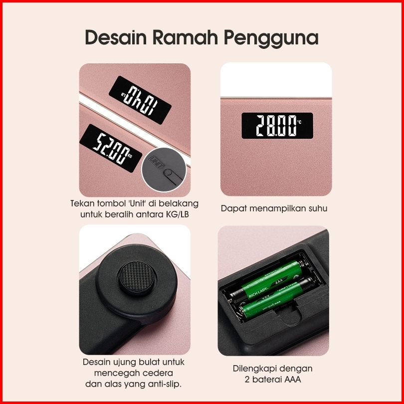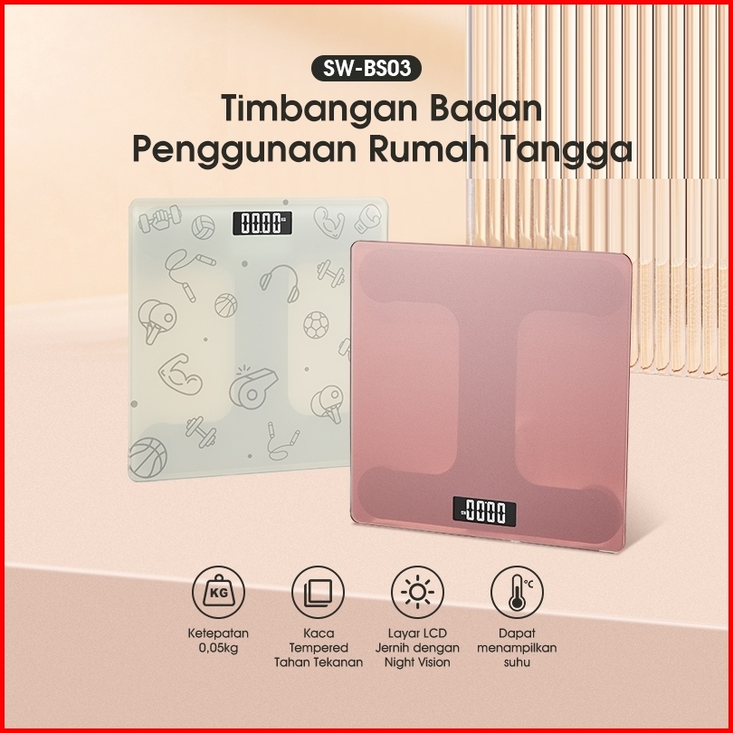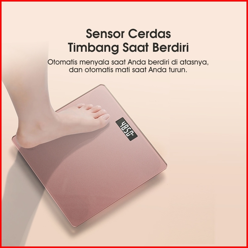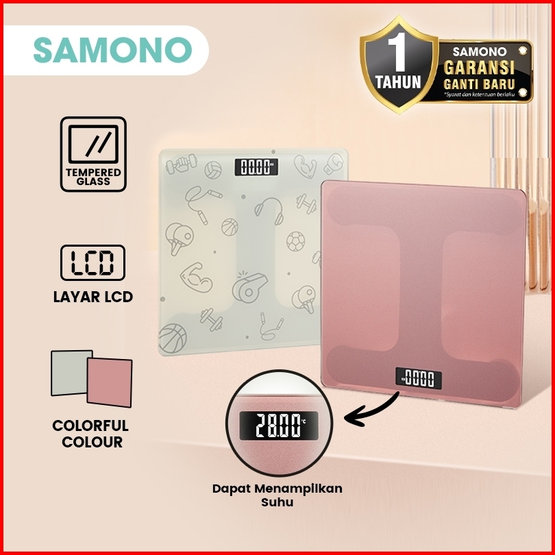 Samono Timbangan Badan Digital Kaca Body Scale Up To 150kg Presisi 0.05kg Layar Led 26cm X 26cm Penampil Suhu Otomatis G