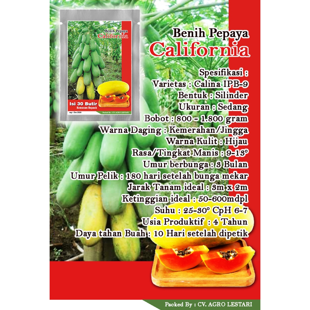 Bibit Pepaya California Super Unggul / Bibit Pepaya California Kan Repk Isi 30 Butir