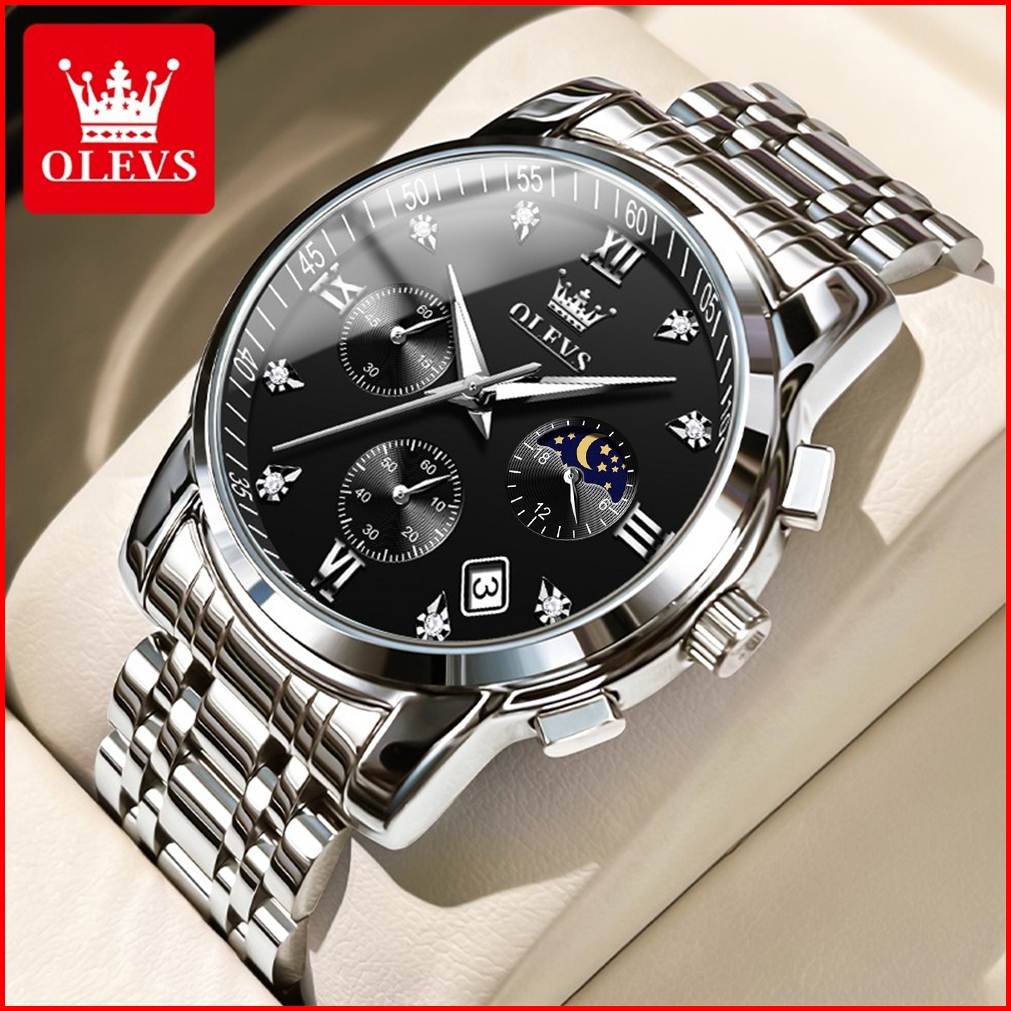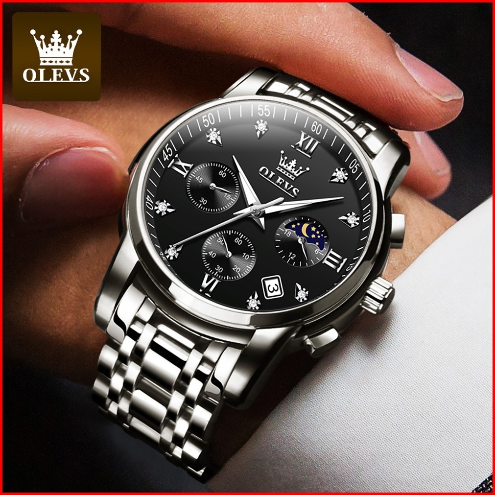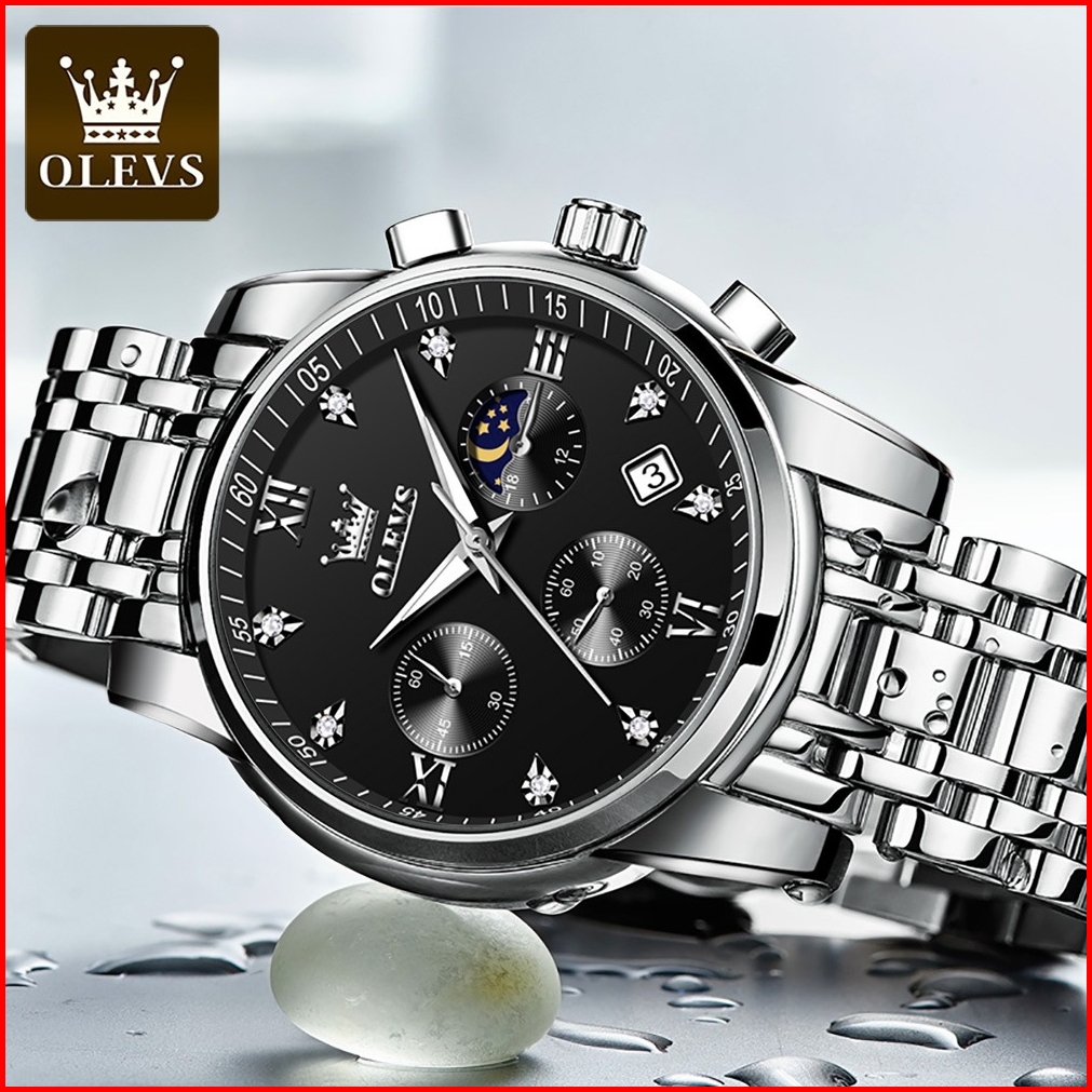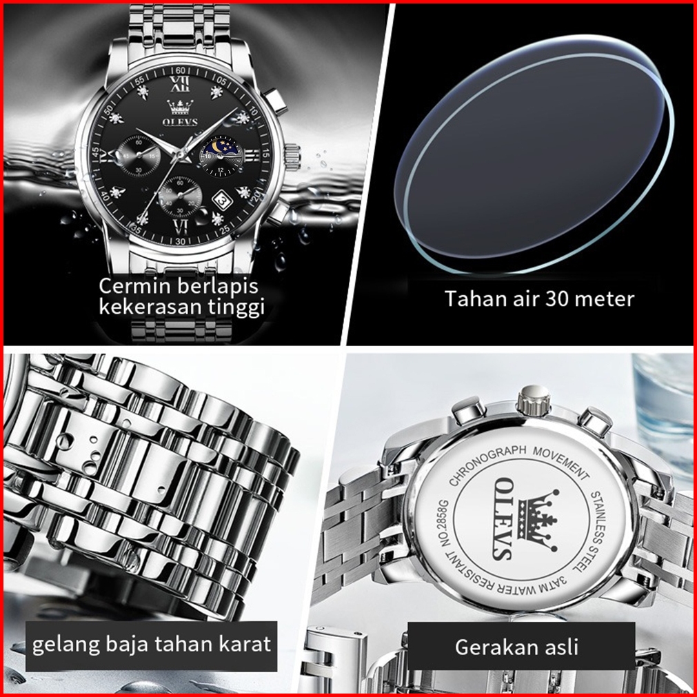 Olevs Jam Tangan Pria Anti Air Original Stainless Steel Chrono Aktif Cowok Luminous Kalender Analog Men Watch Mode 2858