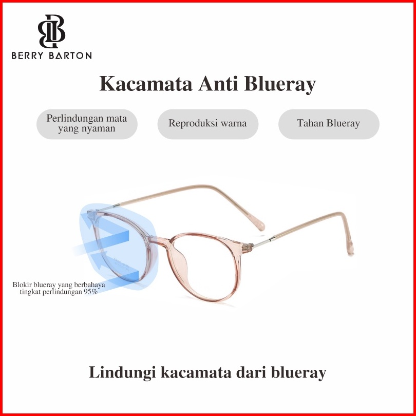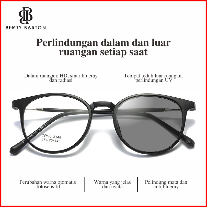 Berrybarton - Kacamata Bulat Pelajar Modern Bisa Minus Photocromic Blueray 8148