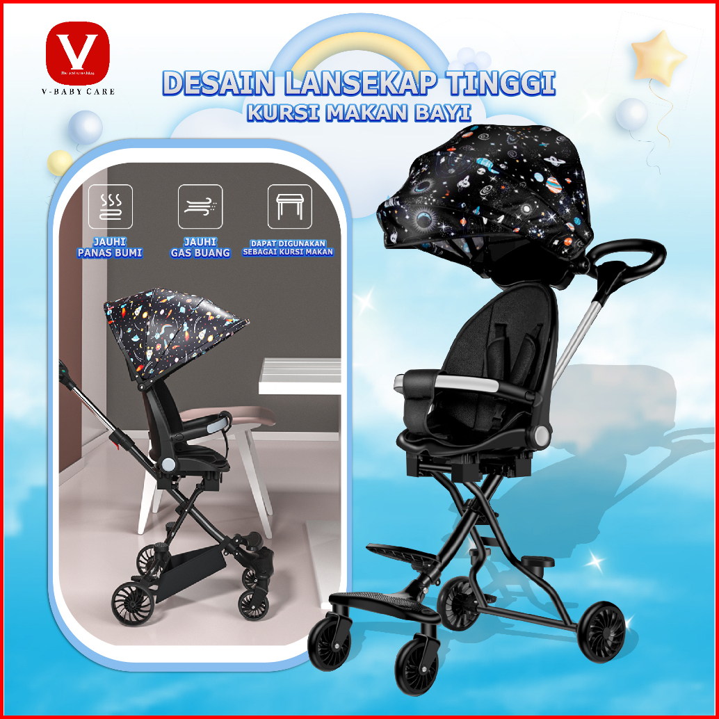 Vbaby Care Kereta Dorong Bayi Kursi Dorong Multifungsi Berbaring Dua Arah Dilipat Vbaby-320