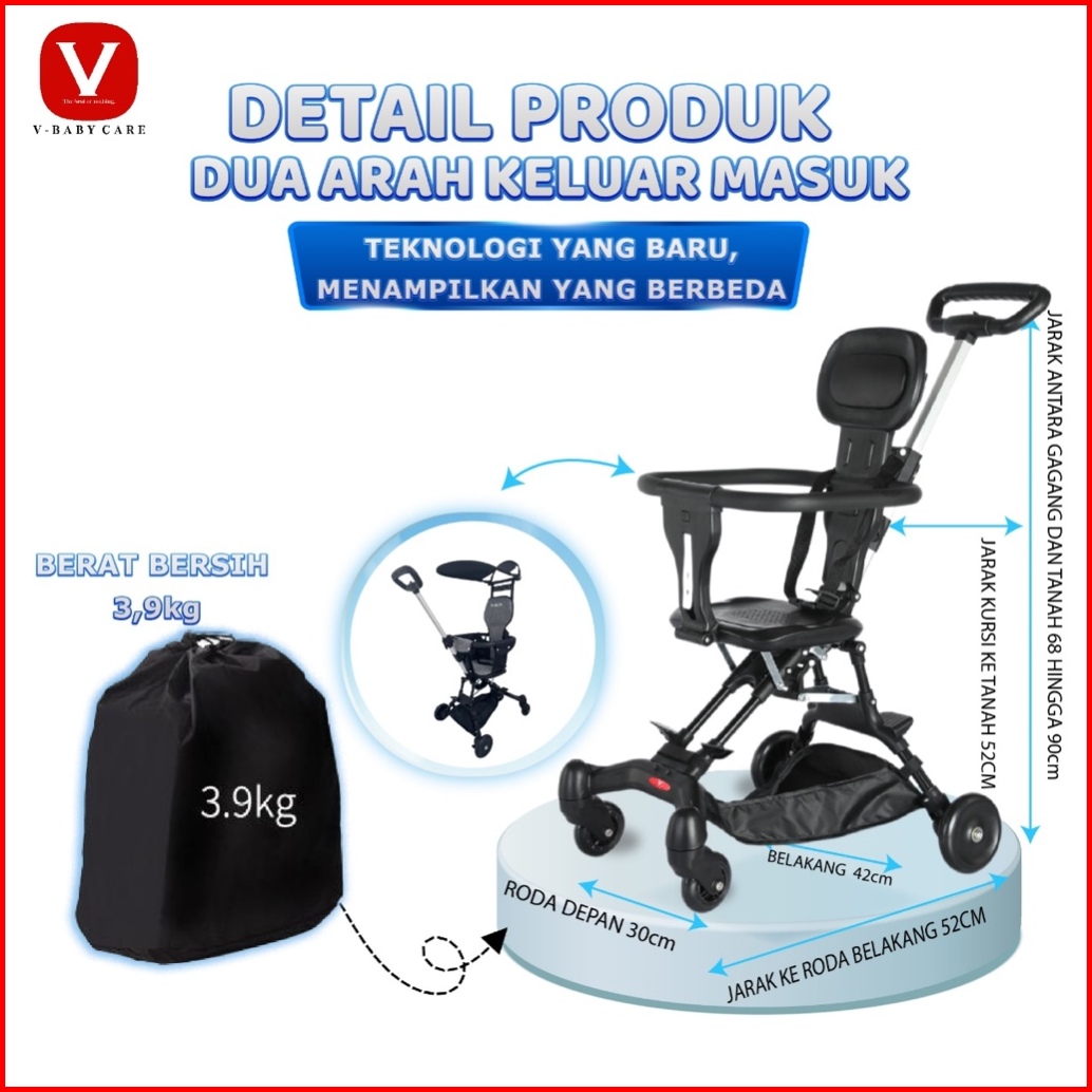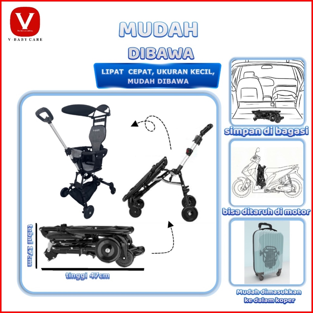 V-baby Care Stroller Bayi Lipat Stroller Bayi Dua Arah Kereta Dorong Bayi Lipat Kereta Dorong Bayi Dua Ara Kereta Dorong