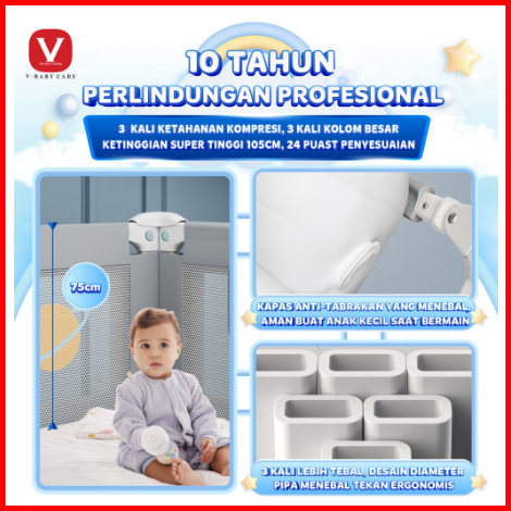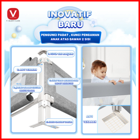 V-baby Care Babybedrail Baby Bed Rail Safety Guard Bedguard Fence Extra Tall Pembatas Pengaman Pagar Kasur Bayi Tempat T