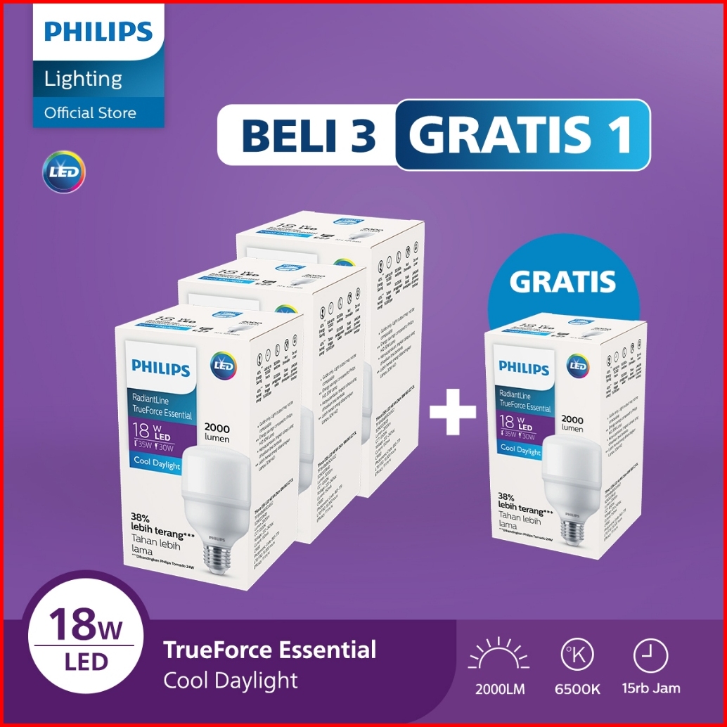 Philips Paket Lampu Lebih Cuan Beli 3 Gratis 1 Radiantline Trueforce 18w 6500k Putih