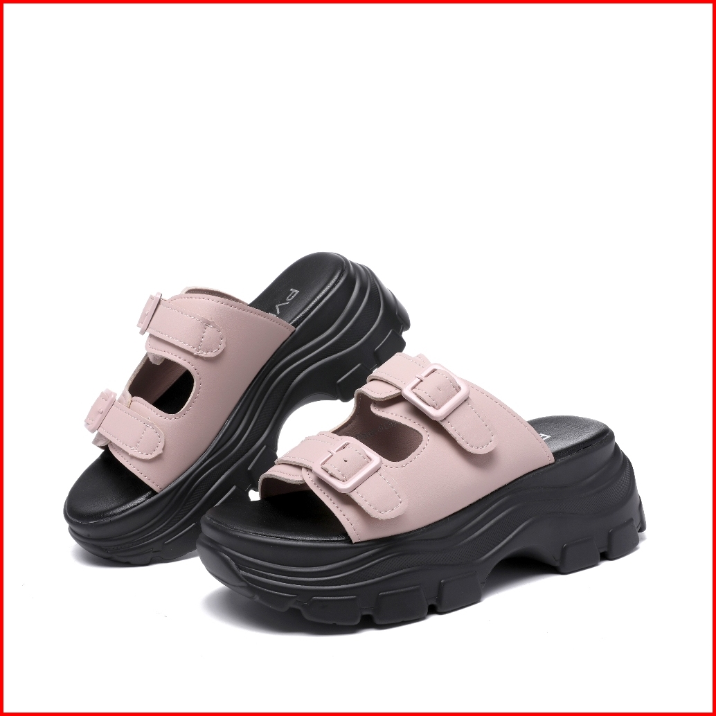 Pvn Aran Sandal Tali Wanita Hitam Pink 217