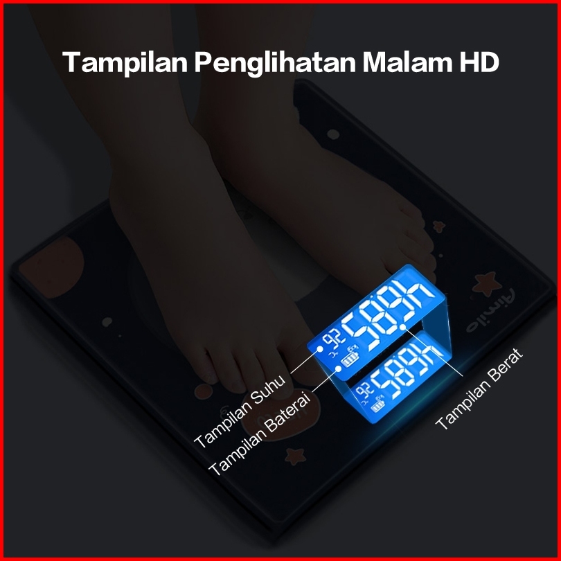 Aimilo - Timbangan Badan Digital Kartun Pengukuran Akurat Timbangan Layar Lcd Berat Max 180kg