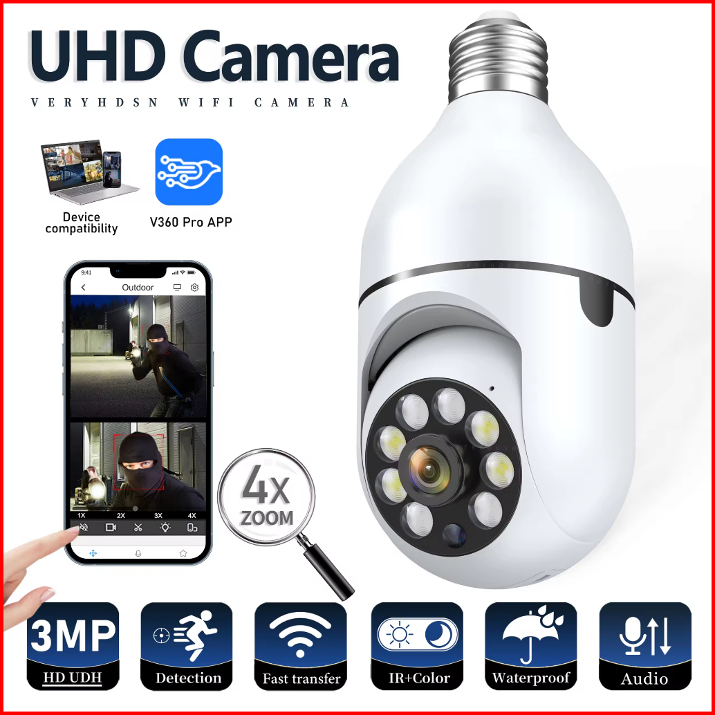 Cctv E27 Camera V380 Pro Bohlam Cctv Ip Kamera Wifi Jarak Jauh Lewat Hp 360 Wide 1080p Cctv Lampu