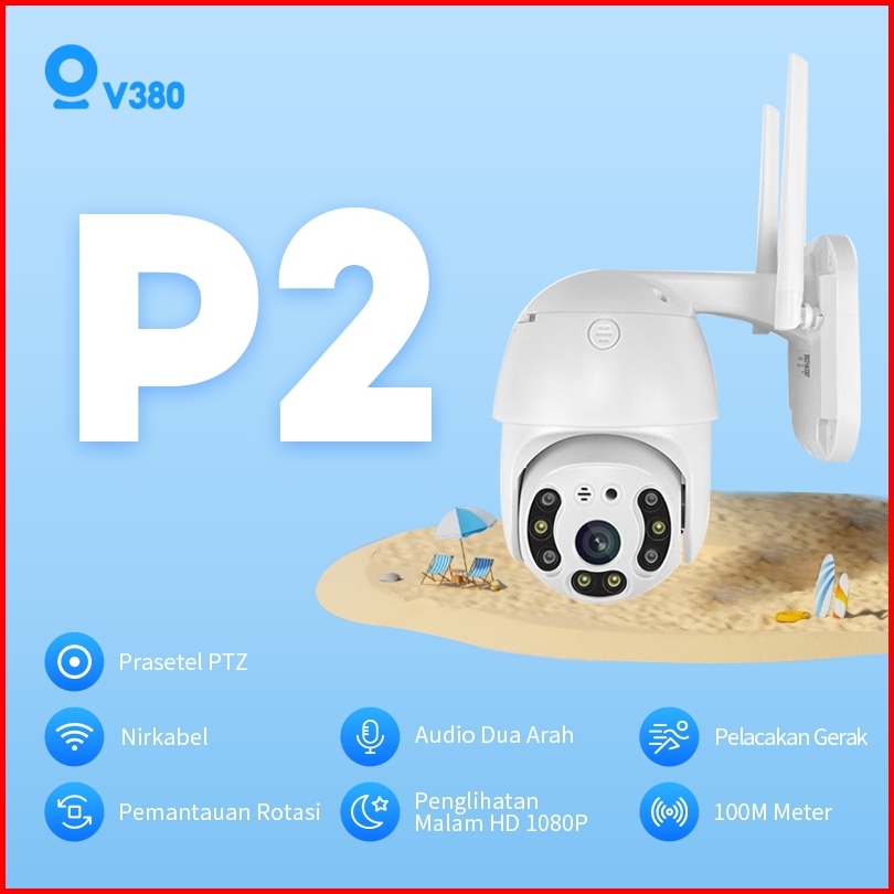 V380 P2 1080p Wifi Kamera Ip Nirkabel Cctv Outdoor Tahan Air Penglihatan Malam Video Alarm Keamanan