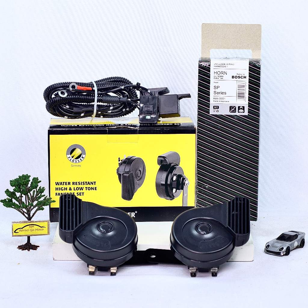 PAKET Flosser 129212 SP Klakson Keong Waterproof Samping 12 Volt Double Soket Pin Terminal 2 High & Low Tone Fanfare Hor