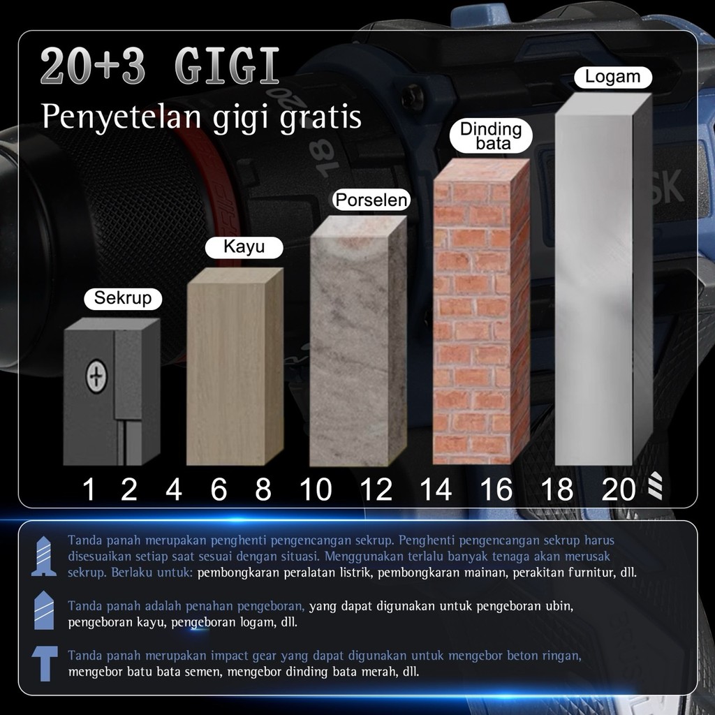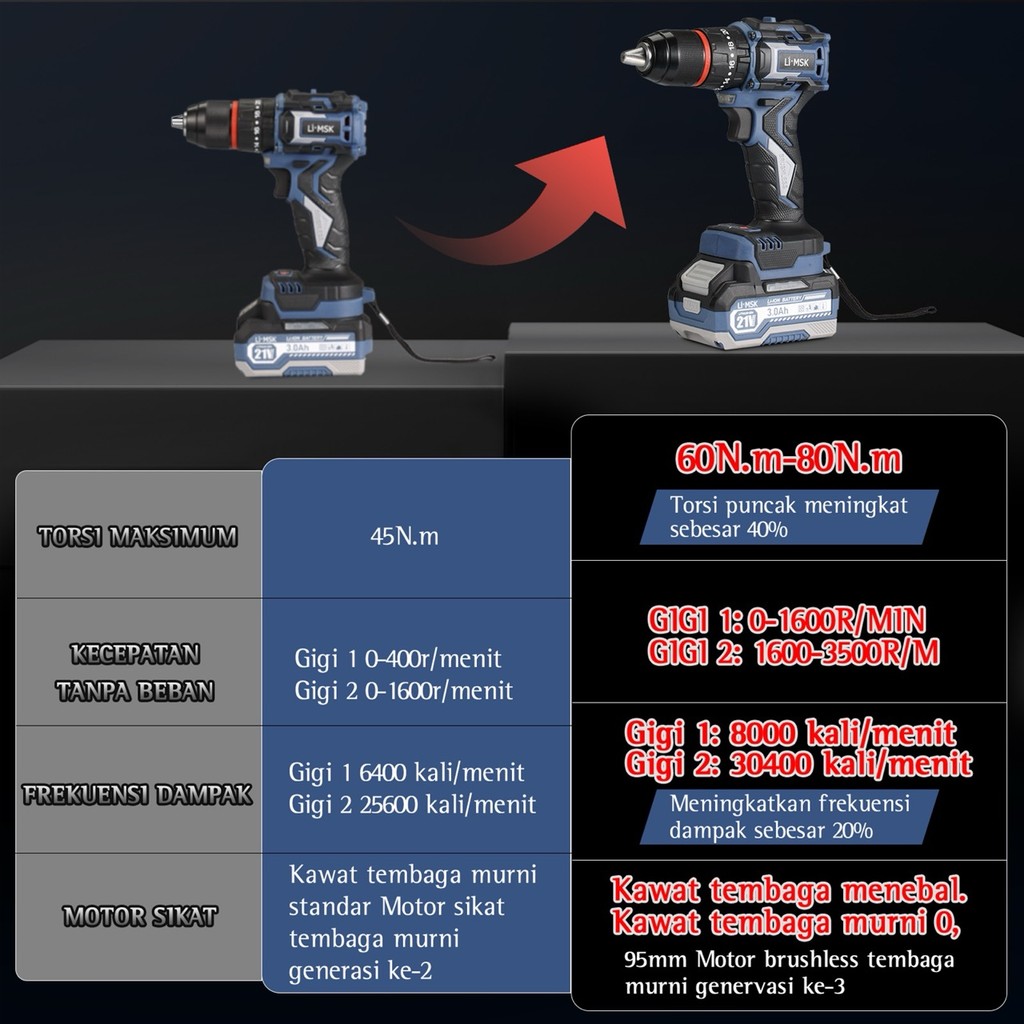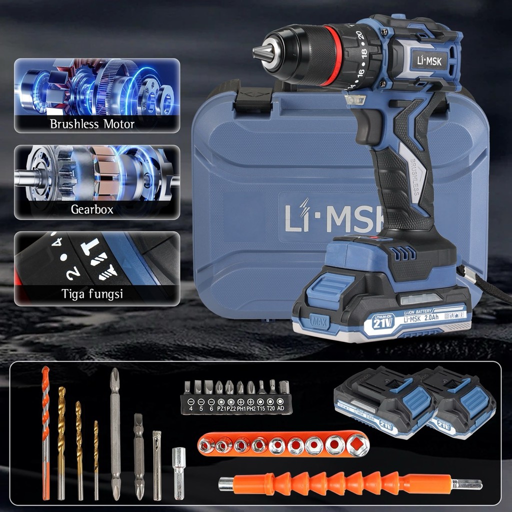 LIMSK LI-1010 Mesin Bor Baterai Brushless 80N.M 13mm Cordless Impact Drill Dapat Mengebor Beton Besi Kayu