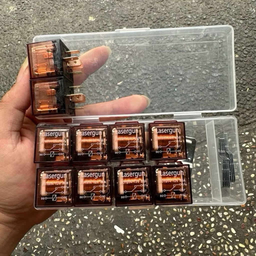 ( PROMO 10 PCS RELAY KAKI 5 ) RELAY KLAKSON TRANSPARAN KAKI 5 DAN KAKI 4 LASERGUN 12 VOLT 80 AMPERE UNIVERSAL
