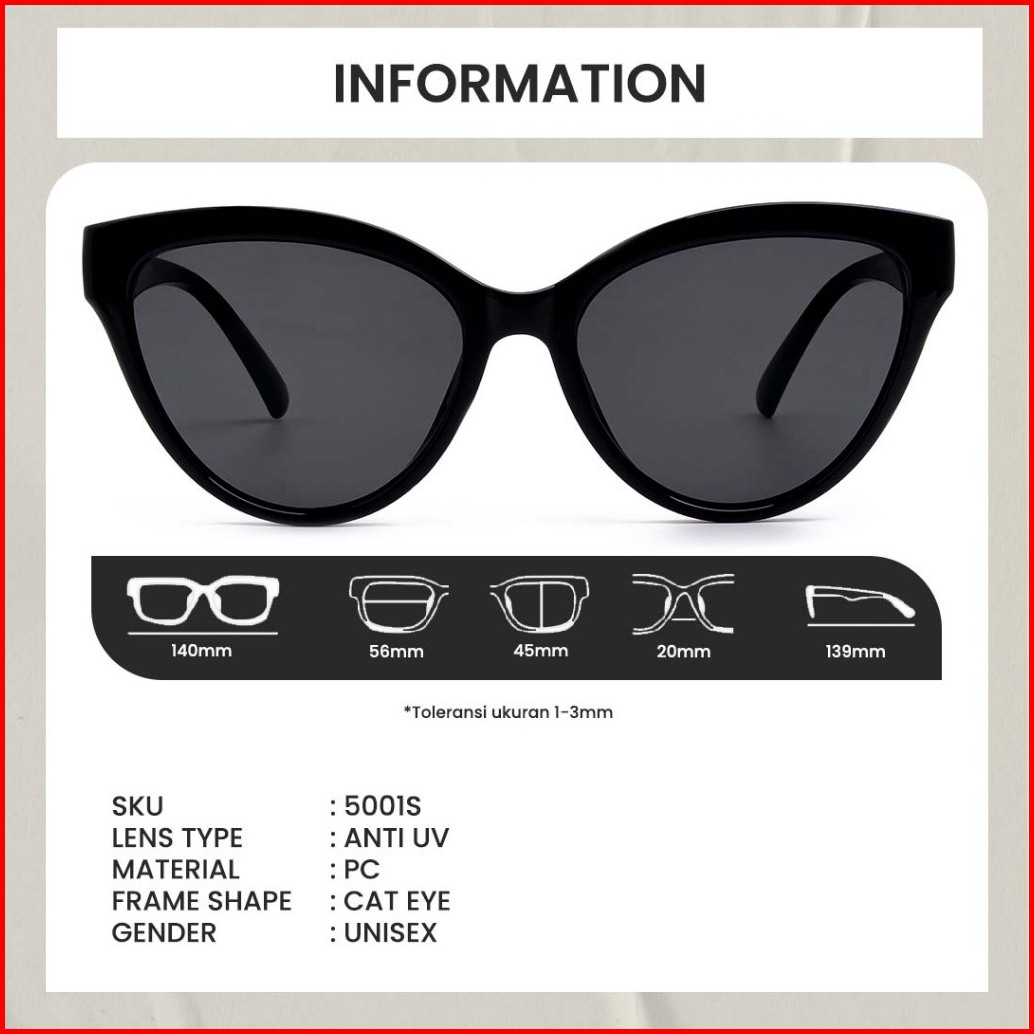 Berrybarton Kacamata Hitam Cat Eye Sunglasses Anti Silau Outdoor Anti Uv 400 Wanita 5001s