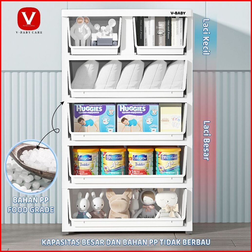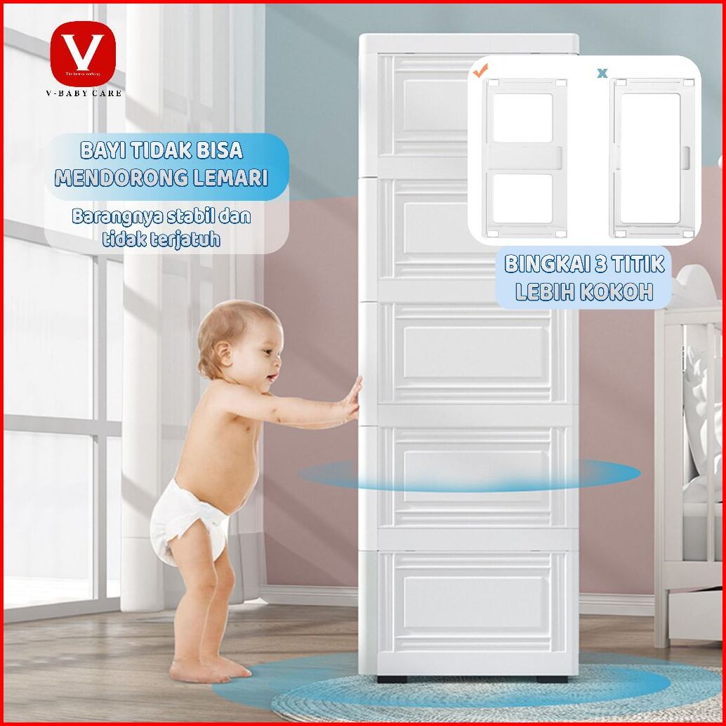 V-babycare Memperdalam Menebal Lemari Pakaian Laci Plastik Bertingkat Model Kotak Tempat Penyimpanan Mainan Baby Loker L