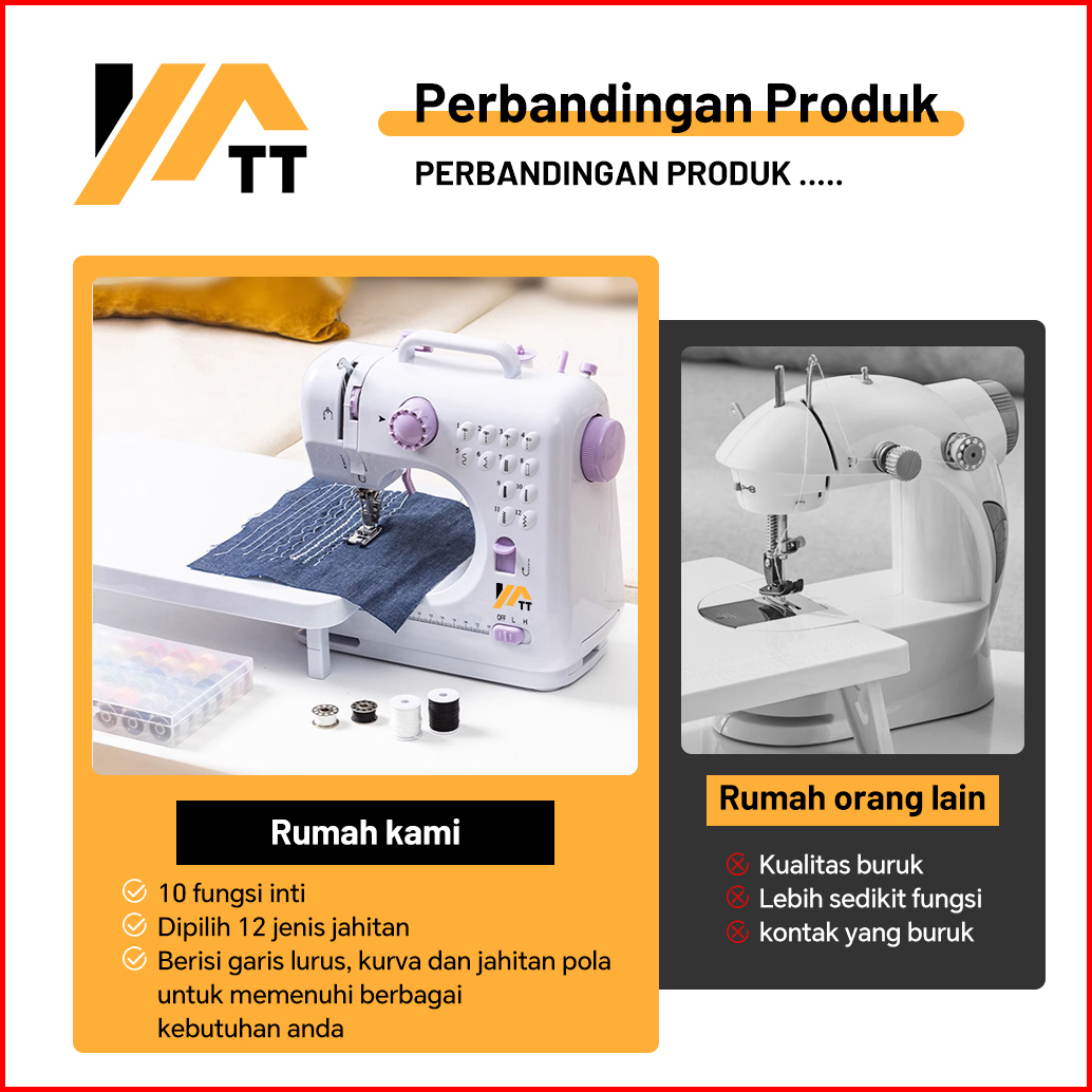 Yatt Mesin Jahit Mini Portabel 505a 12 Stitch Pola Mesin Jahit Listrik Pakaian Mesin Jahit Led