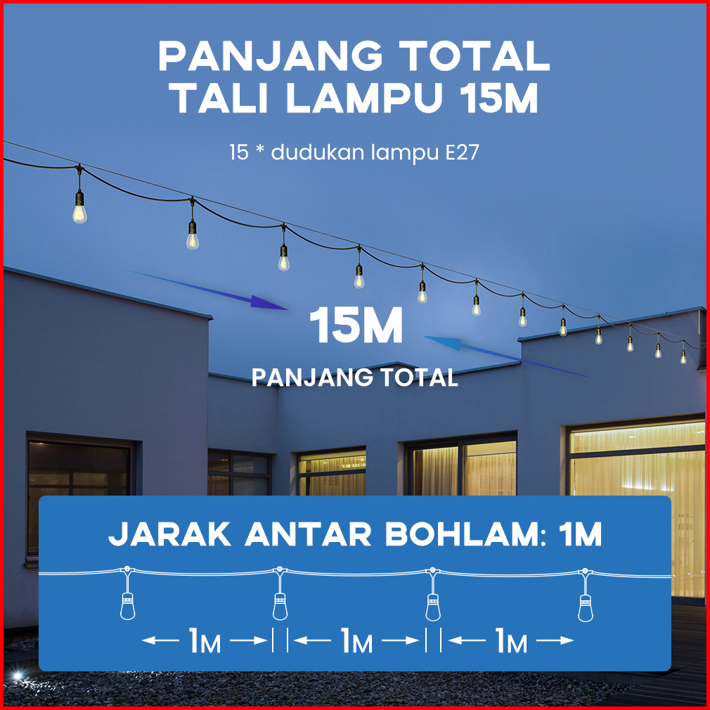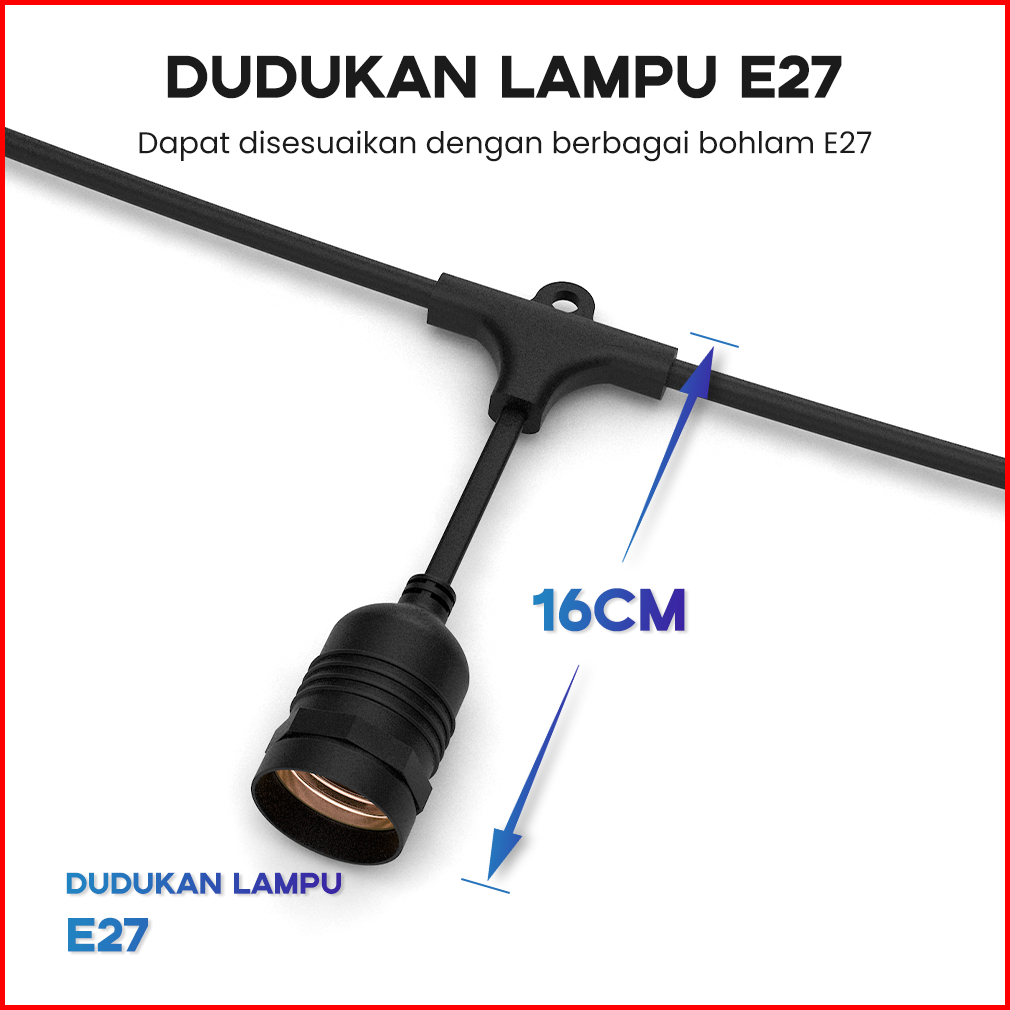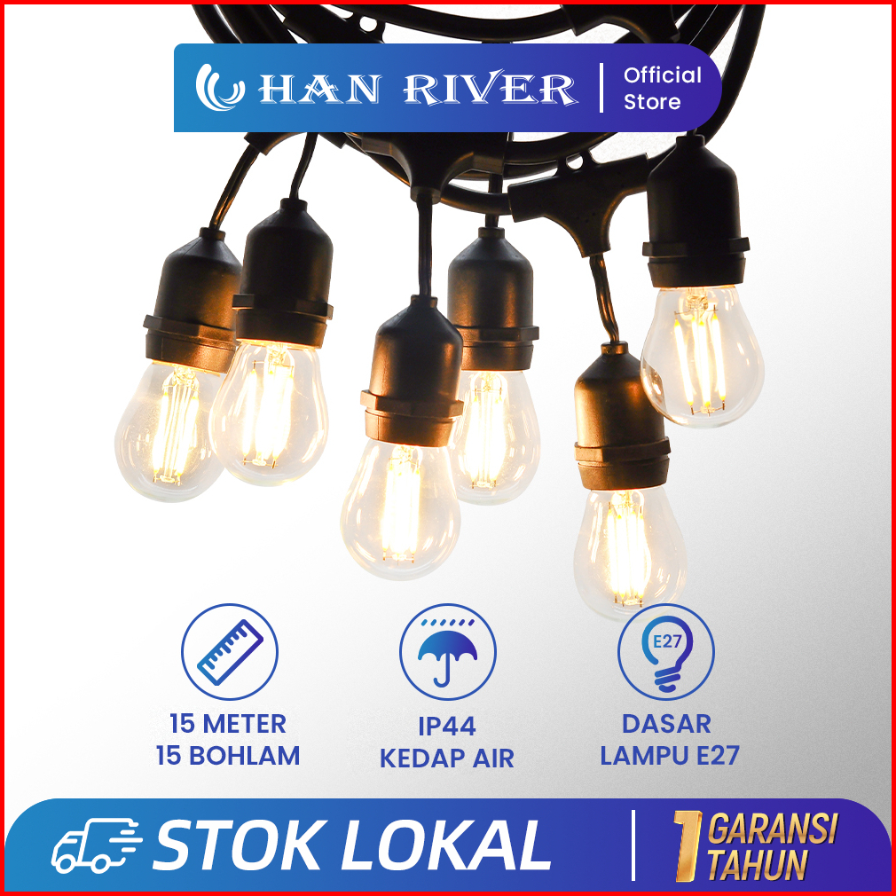 Han River 15m Fitting Lampu Kabel Tahan Air E27 Fitting Lampu Gantung Outdoor Sni Kabel Classic